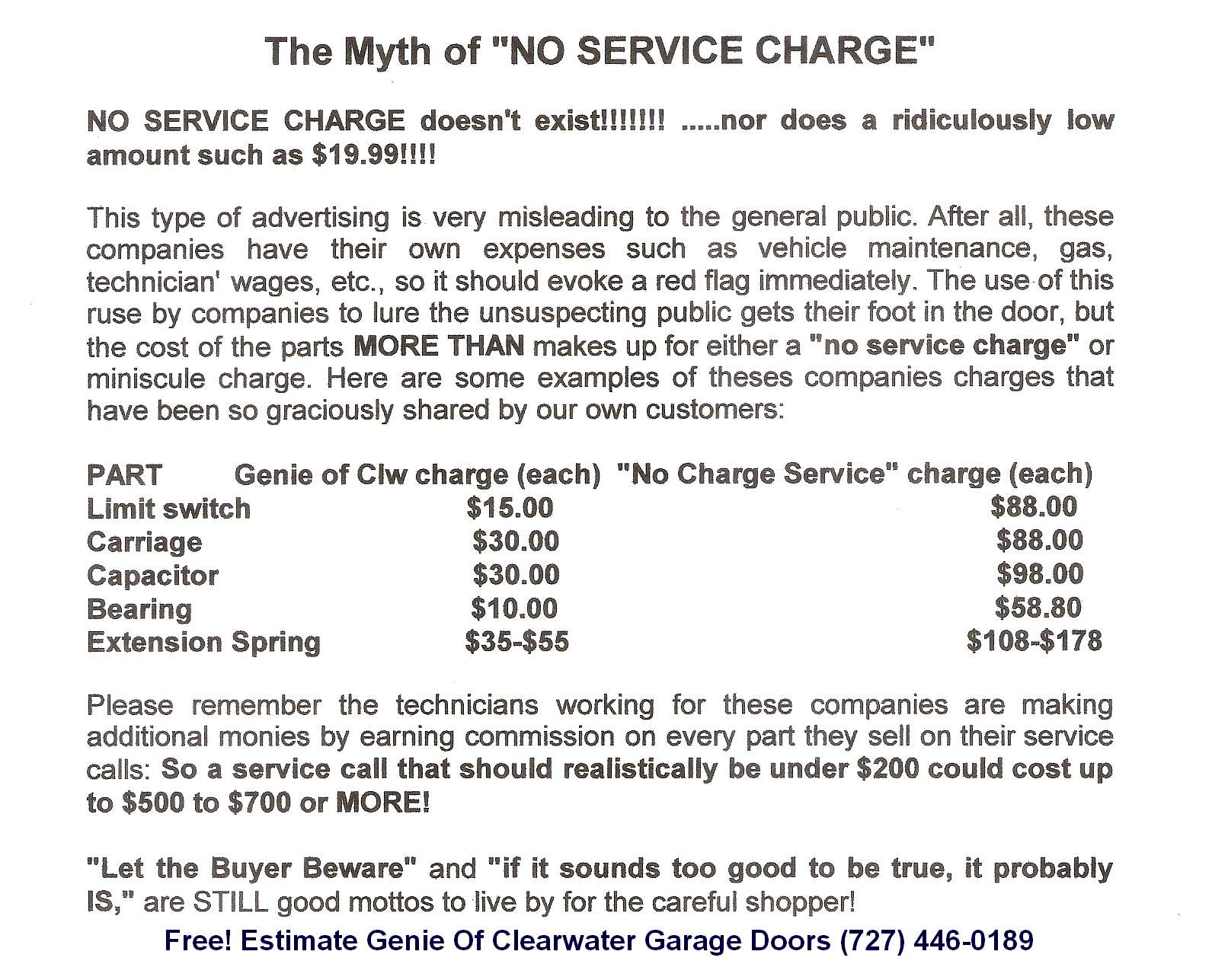 Garage Doors * CALL NOW 727-446-0189 * Free! Quote * Pinellas Lic. C-6954 * Pasco ID# 014414 "Serving your community Since 1957"